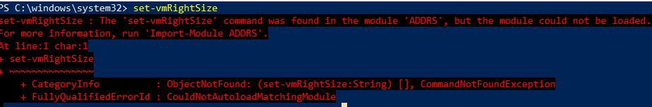 + FullyQualifiedErrorId : Microsoft.PowerShell.Commands.WriteErrorException,set-vmRightSize