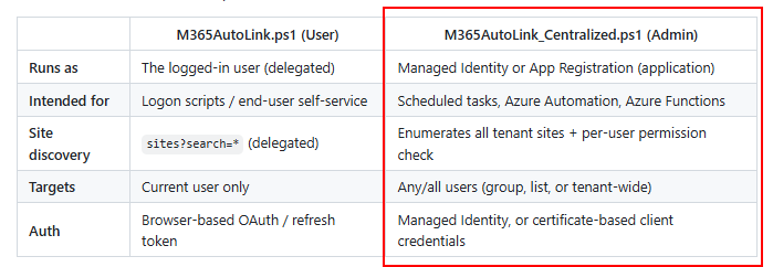 And this led to some questions if I could also make a version of M365AutoLink that can run centrally. There was a hurdle to overcome: how do we know what libraries a user has access to?